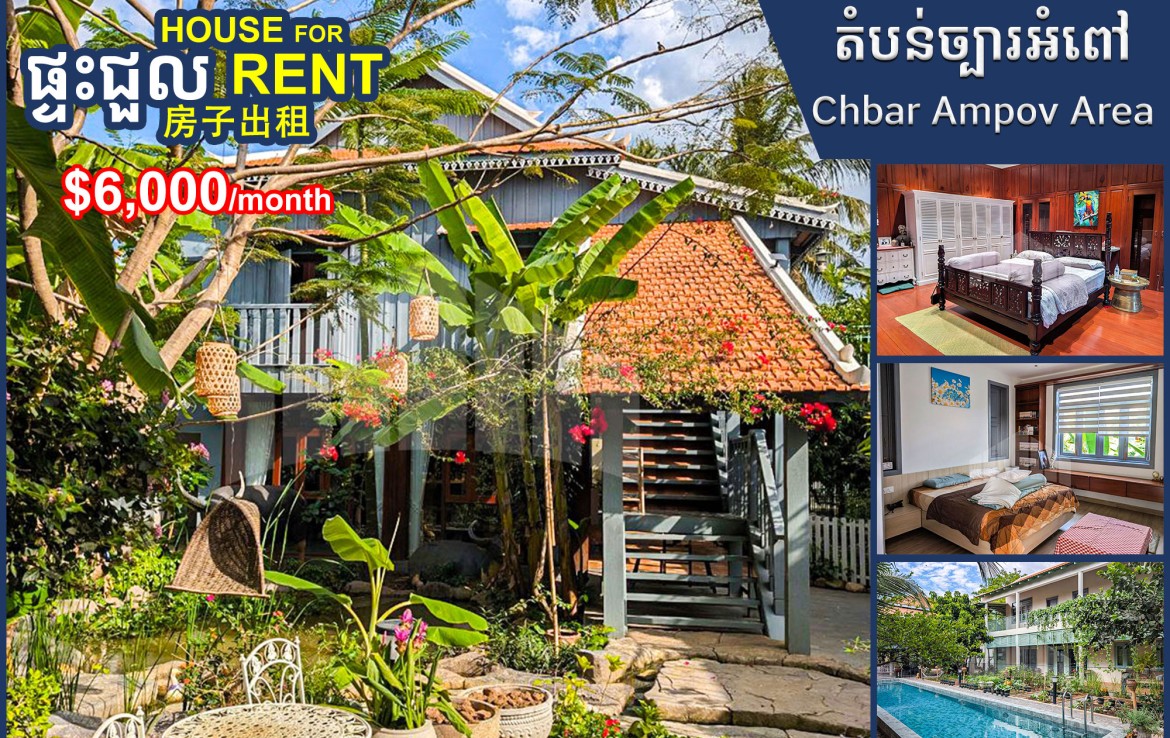 វីឡាមានអាងហែលទឹកសម្រាប់ជួល តំបន់ច្បារអំពៅ