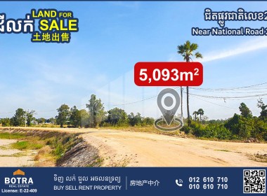 ដីកែងលក់ ជាប់ផ្លូវទទឹង20m ទល់មុខស្ទឹងតូច ជិតផ្លូវជាតិលេខ2