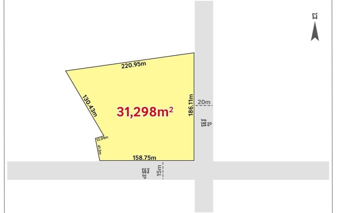 ដីលក់ លើផ្លូវទទឹង15m (ជិតក្រវាត់ក្រុងទី 3) ឃុំឈើទាល កៀនស្វាយ