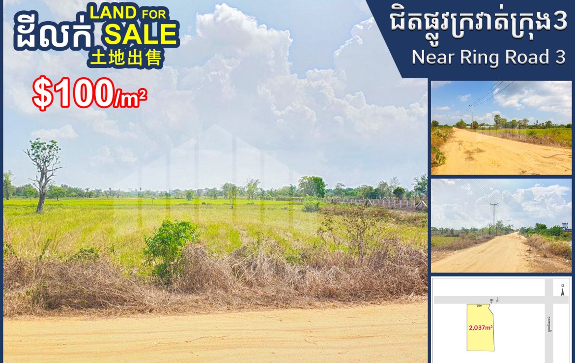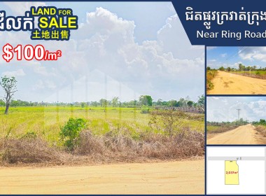 ដីលក់ ជាប់ផ្លូវទទឹង32m ជិតផ្លូវក្រវាត់ក្រុងទី3
