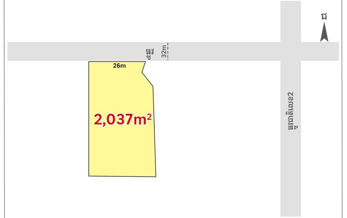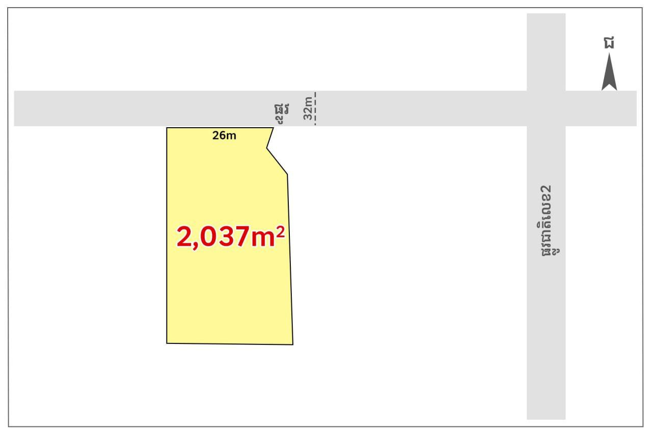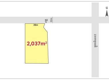• ទំហំ: 2,037m² (ក្បាលដី 26m)