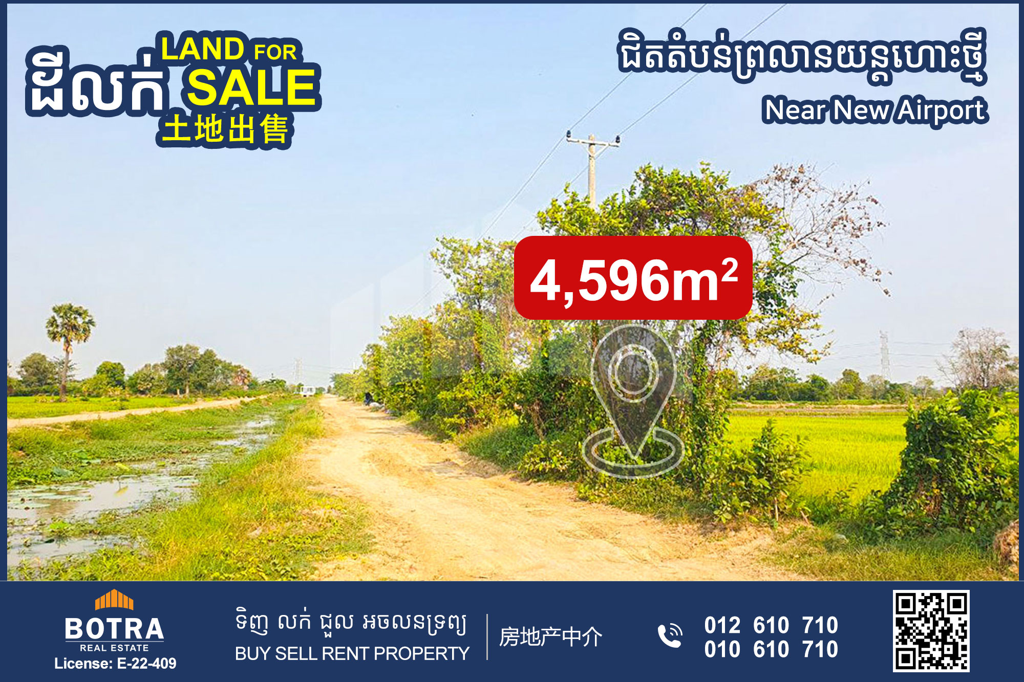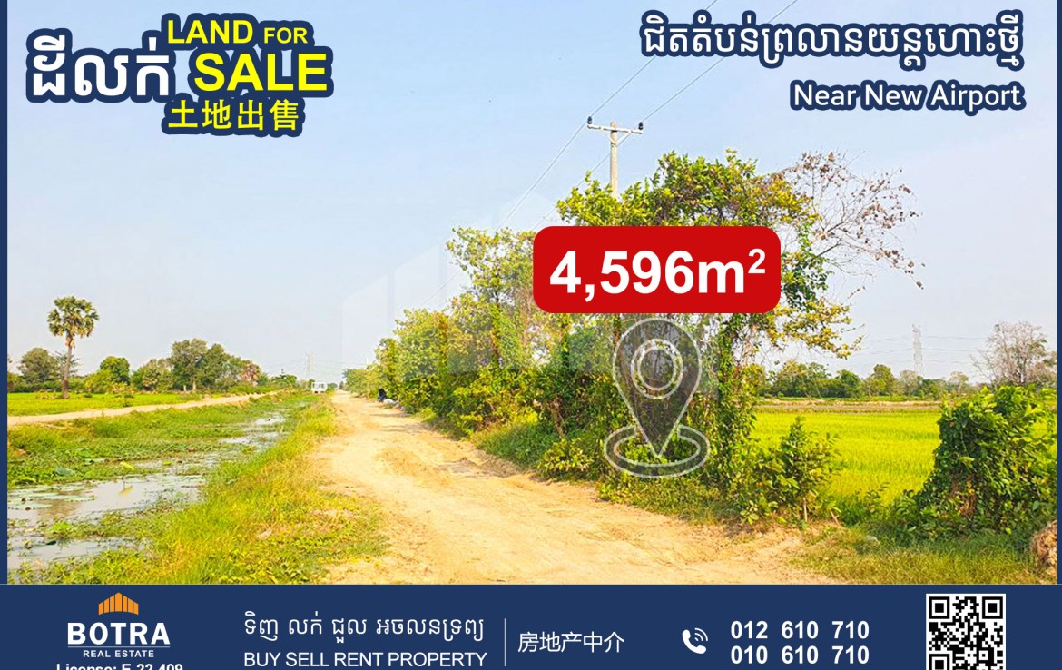 ដីលក់ ជិតព្រលានយន្តហោះអន្តរជាតិតេជោ ជាប់ផ្លូវភ្លោះទទឹង32m