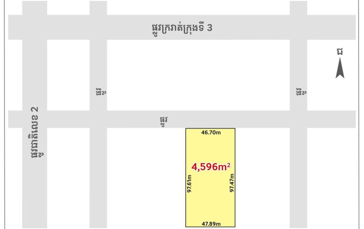 • ទំហ: 4,596m² (ក្បាលដី 46m)