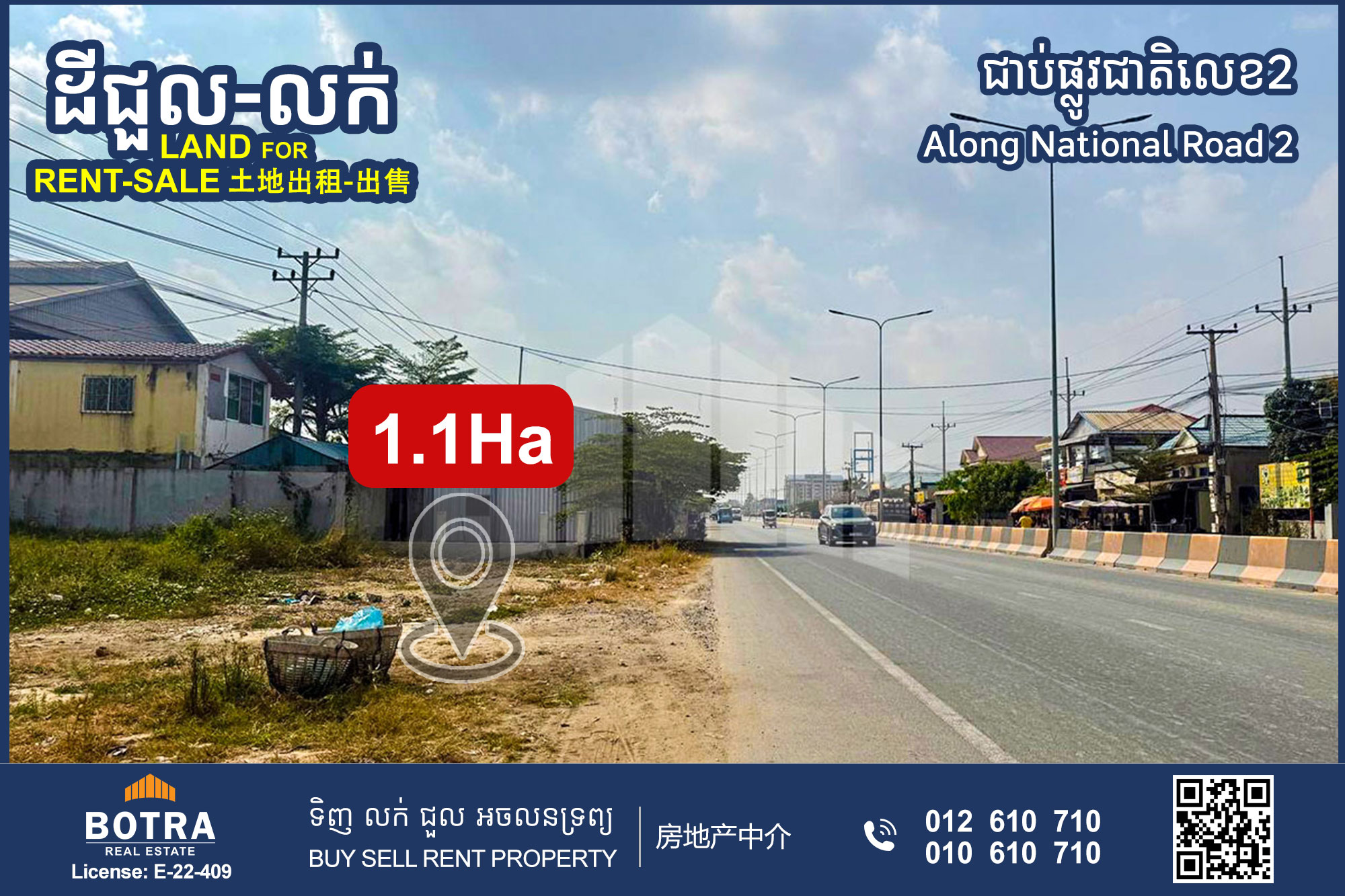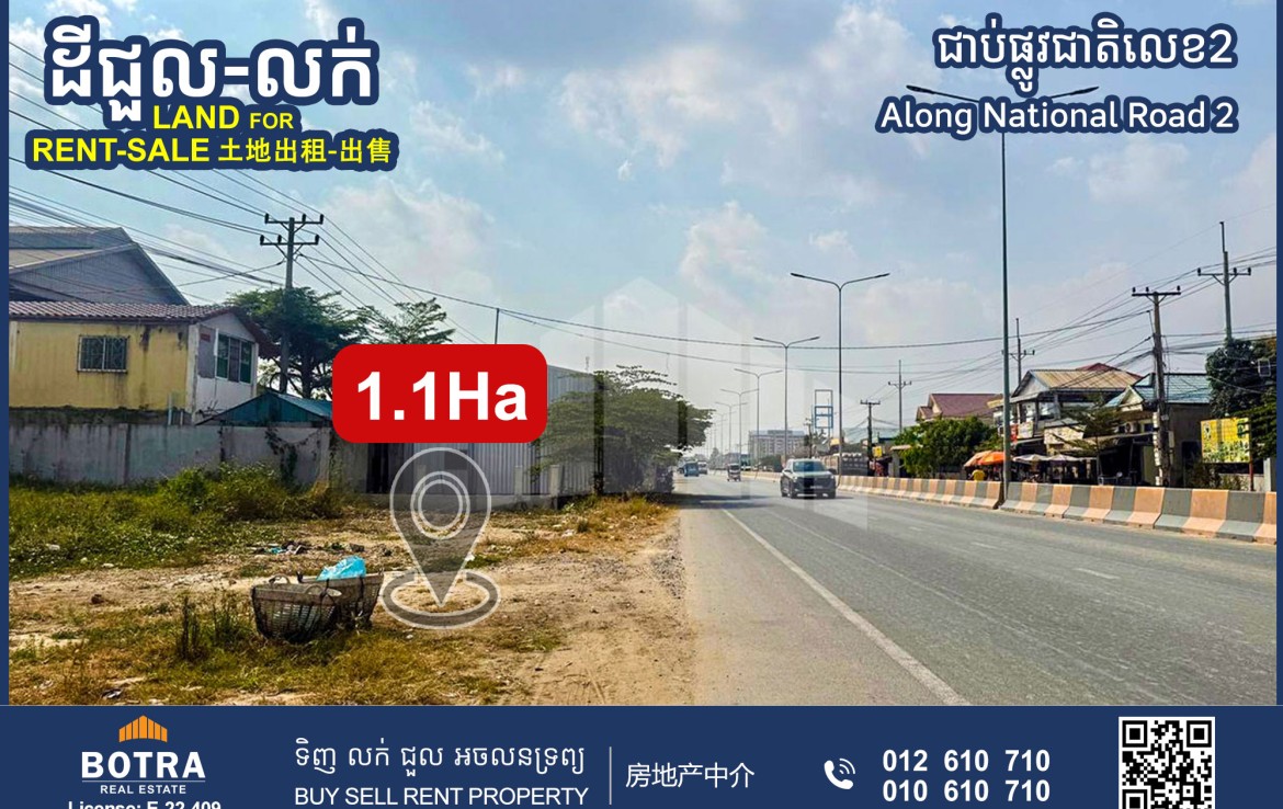📣 ដីលក់-ជួល ជាប់ផ្លូវជាតិលេខ2 សង្កាត់ព្រែកកំពឹស #SN0539