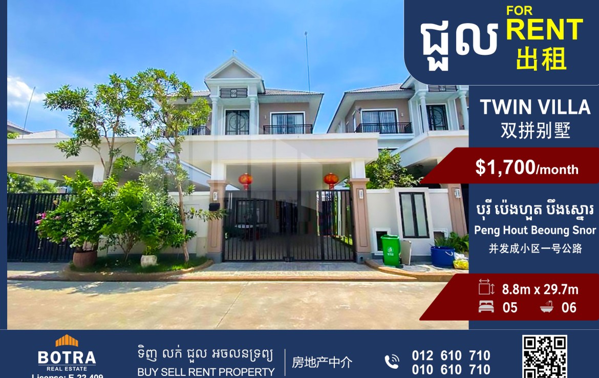 វីឡាភ្លោះ B សម្រាប់ជួល បុរី ប៉េងហួត បឹងស្នោរ