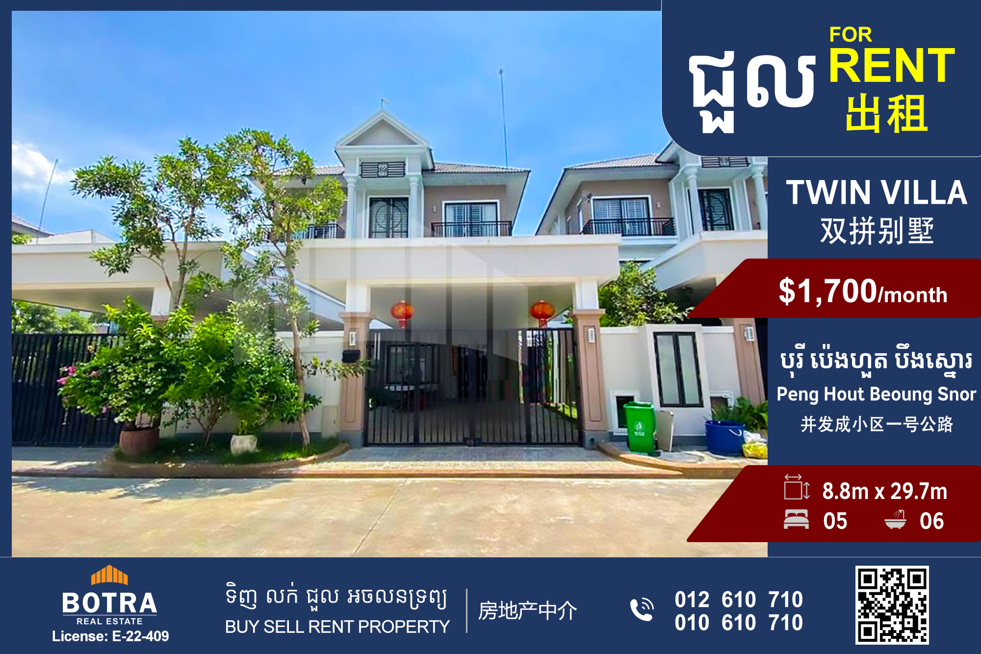 📣 វីឡាភ្លោះ B សម្រាប់ជួល #B442