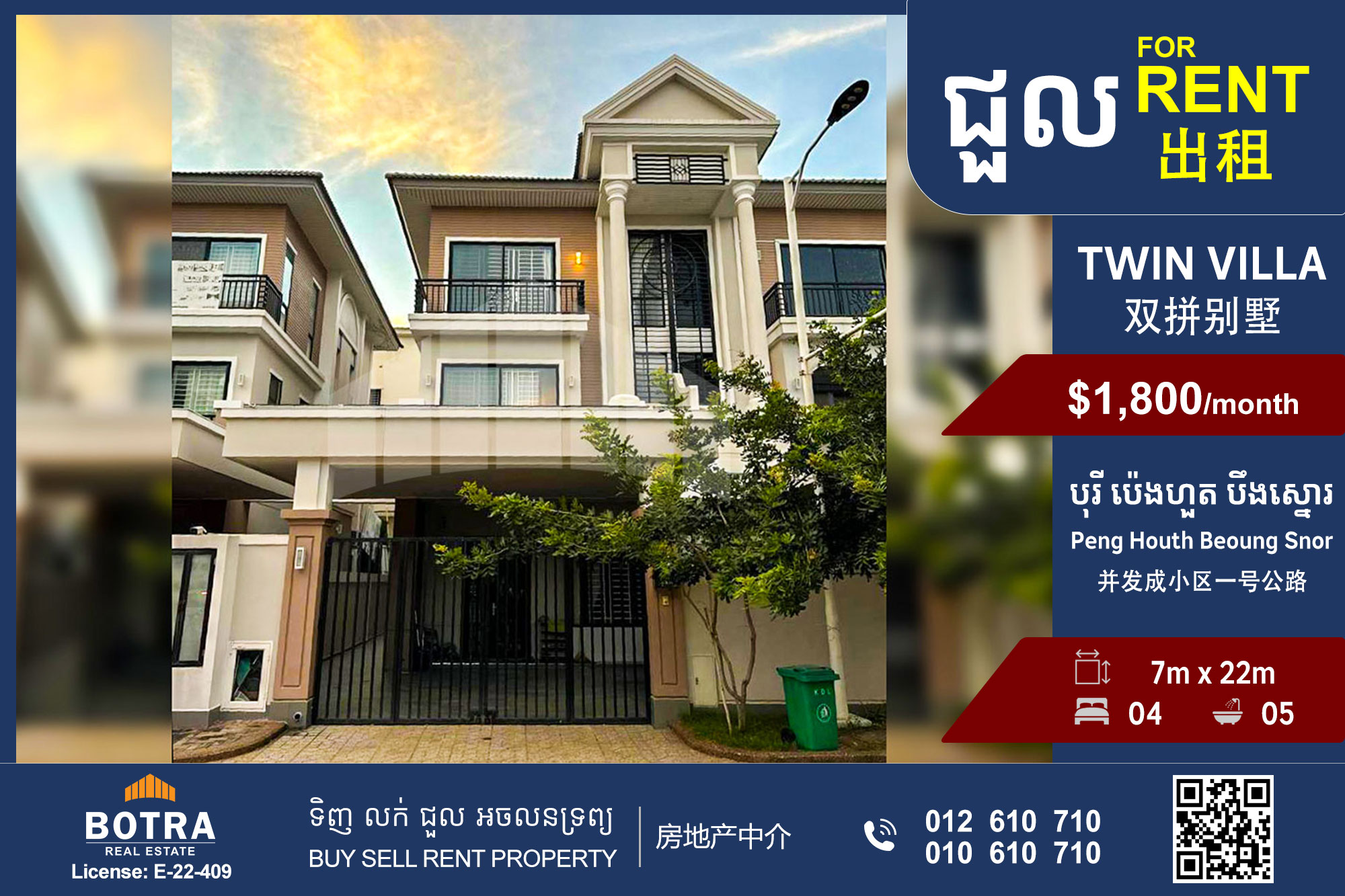 វីឡាភ្លោះសម្រាប់ជួល បុរី ប៉េងហួត បឹងស្នោរ