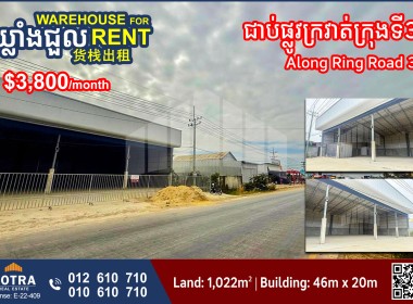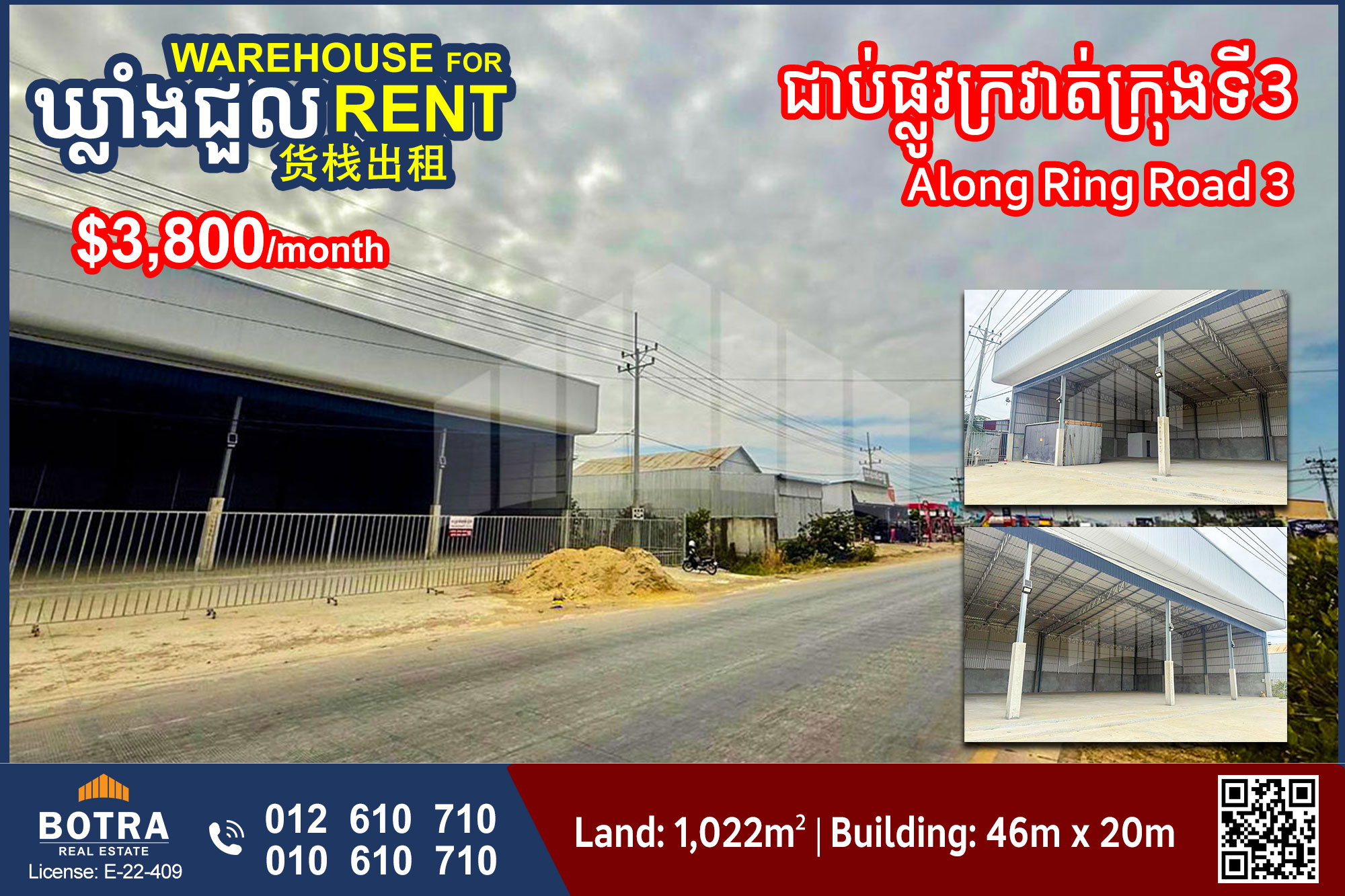 📣 ឃ្លាំងជួល ជាប់ផ្លូវក្រវាត់ក្រុងទី3 ក្បែរច្រកចូលព្រលានថ្មី (5នាទីពីព្រលានថ្មី)