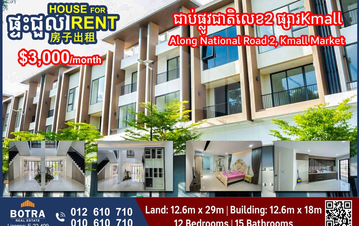 3Shophouse for Rent Along National Road 2, Kmall Market