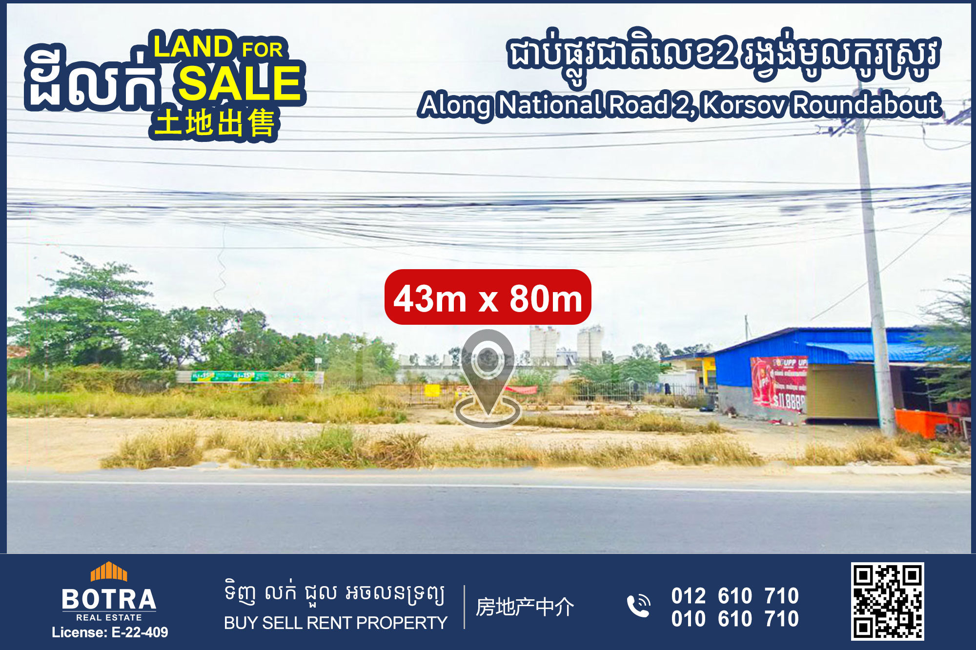 π£ Corner Land for Rent along National Road 2, Korsov Roundabout, Prek Kampus Commune, Dangkor District