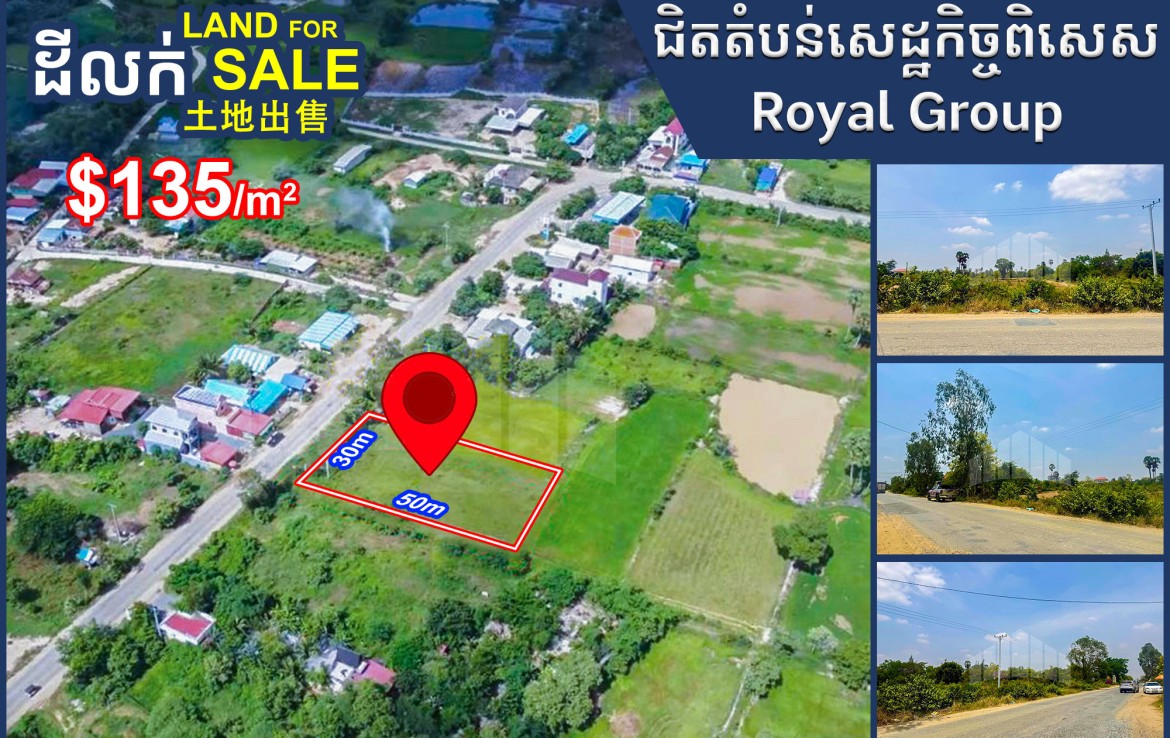 Corner Land for Sale (30mx50m) Deum Rus commune, near Royal Group Special Economic Zone