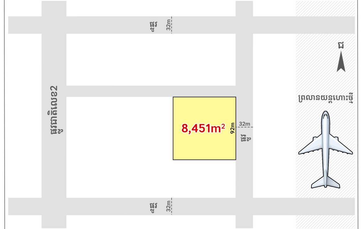 📣 Corner Land For Sale along 32m wide road, New Airport Area, Kandal Stoeung District #SS0038