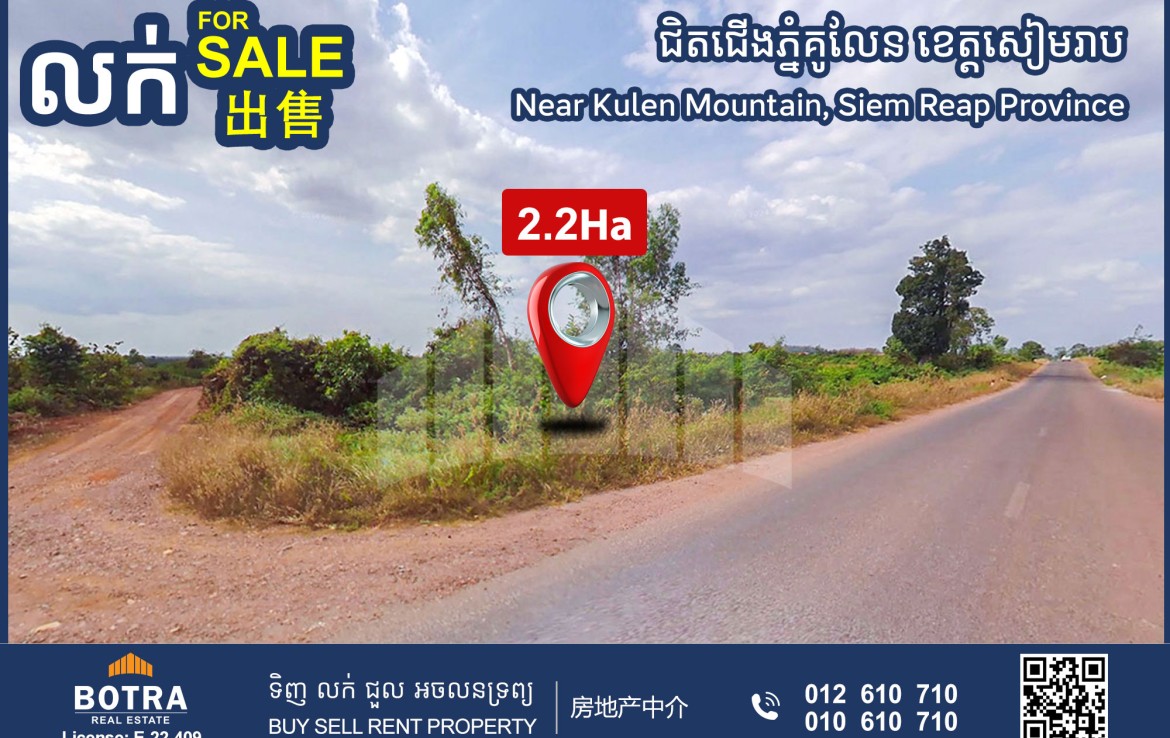 📢 Corner Land for Sale along main road (Malay), Near Kulen Mountain, Banteay Srey District, Siem Reap Province #SN0150