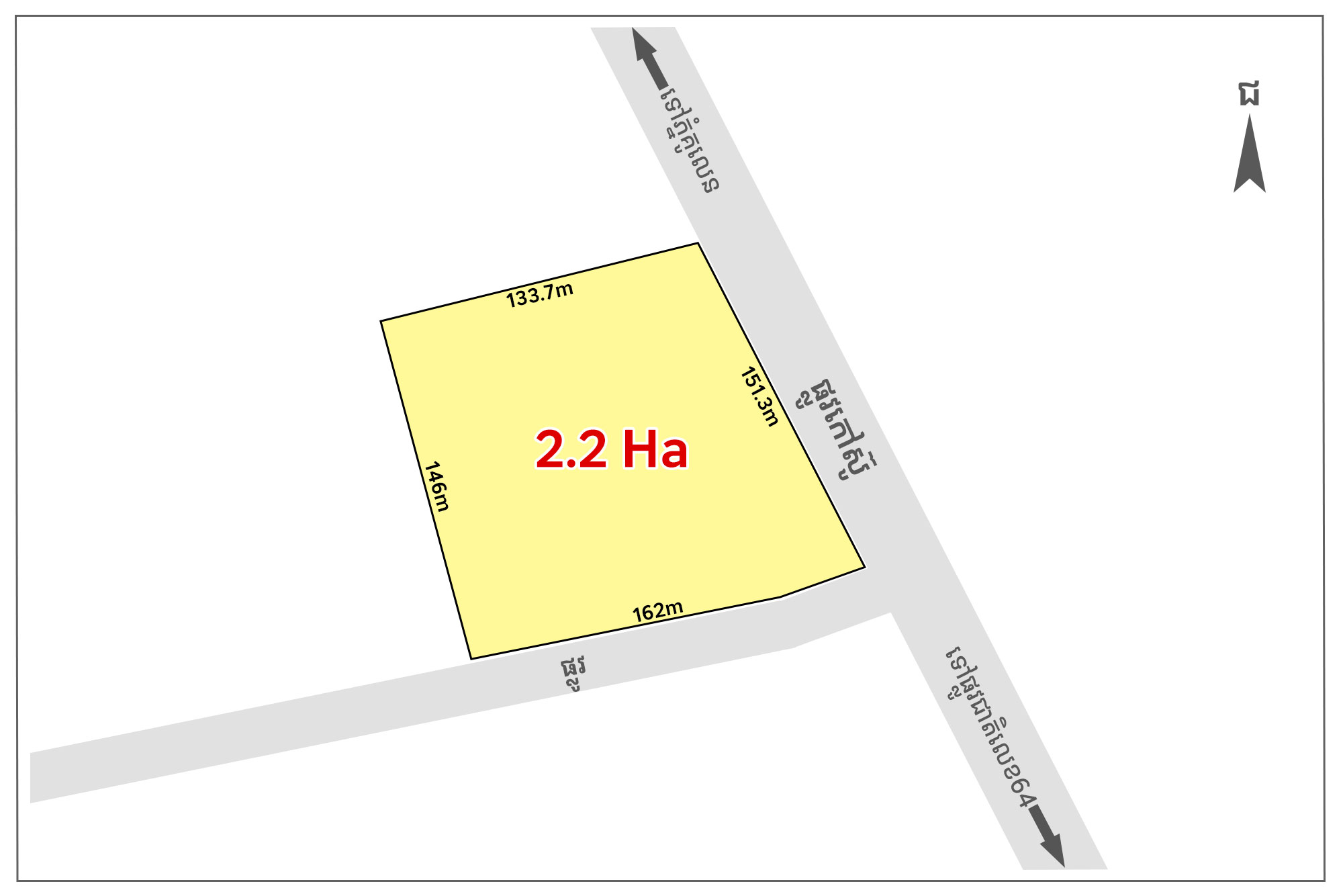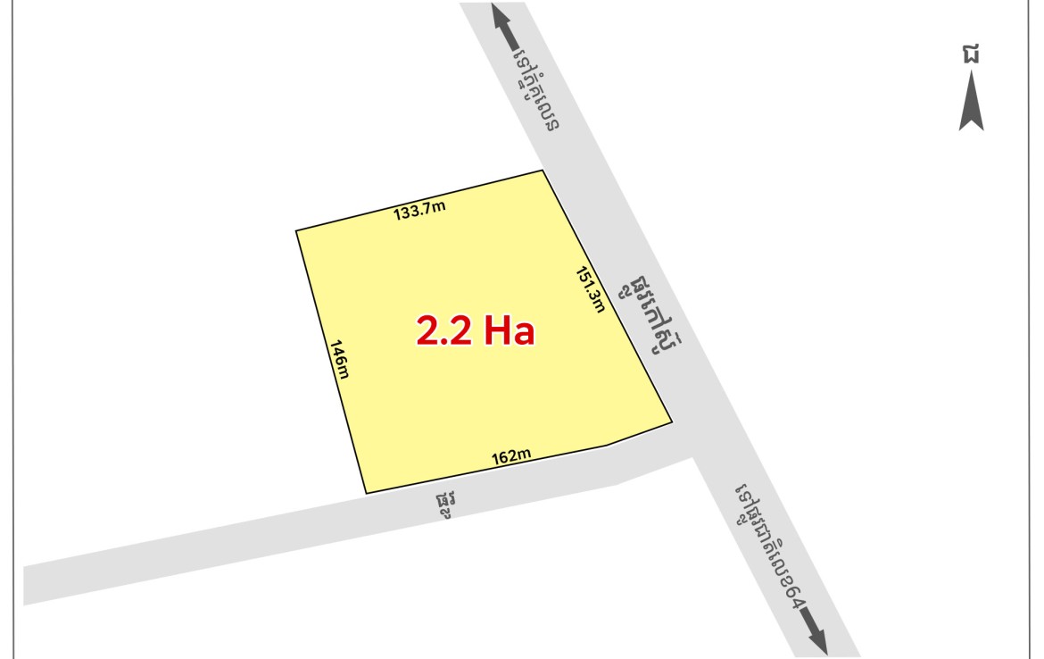 • Land size: 151m x 133 (2.2Ha)