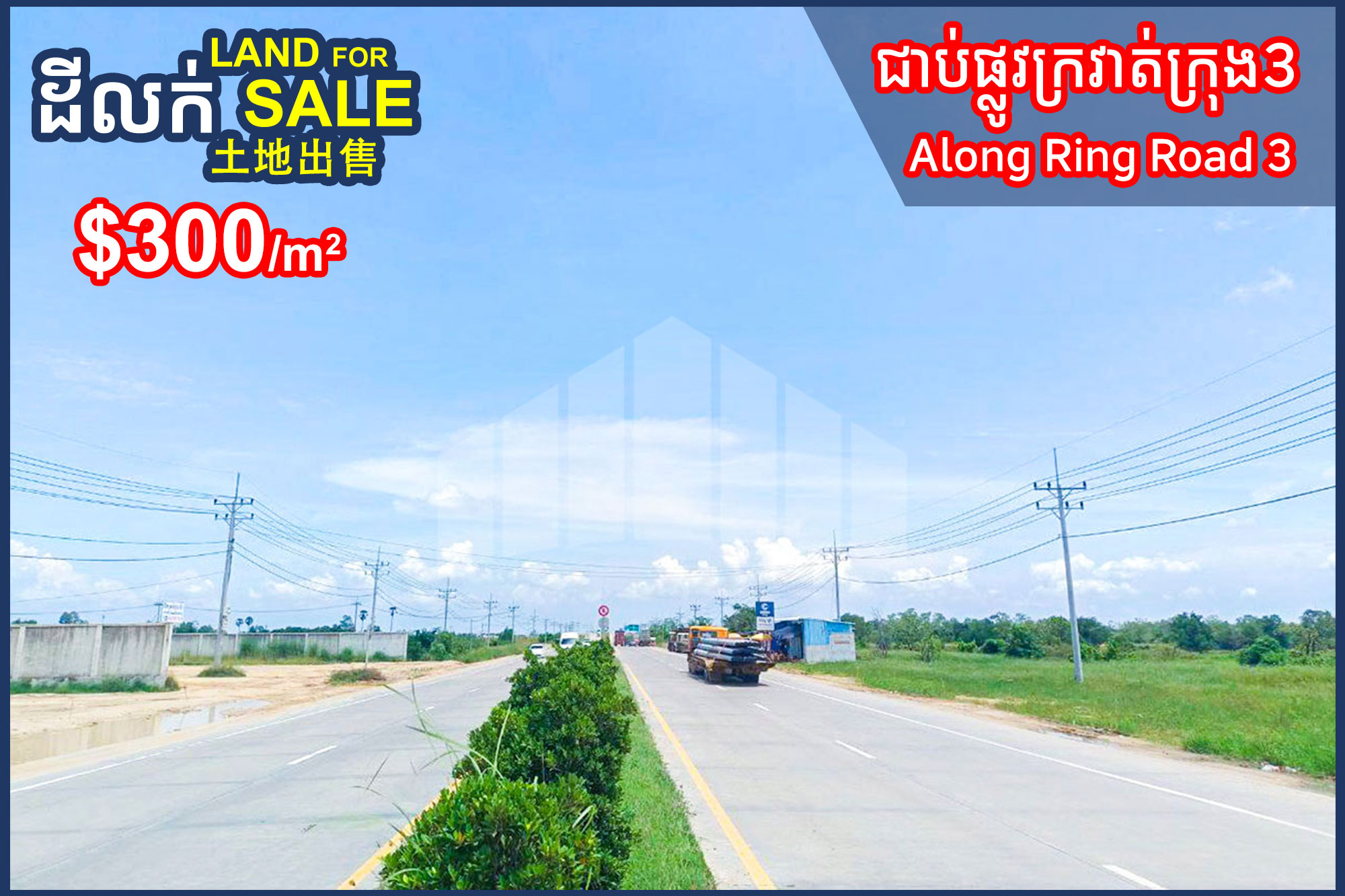 Corner Land for Sale along Ring Road 3 corner of Road 50m