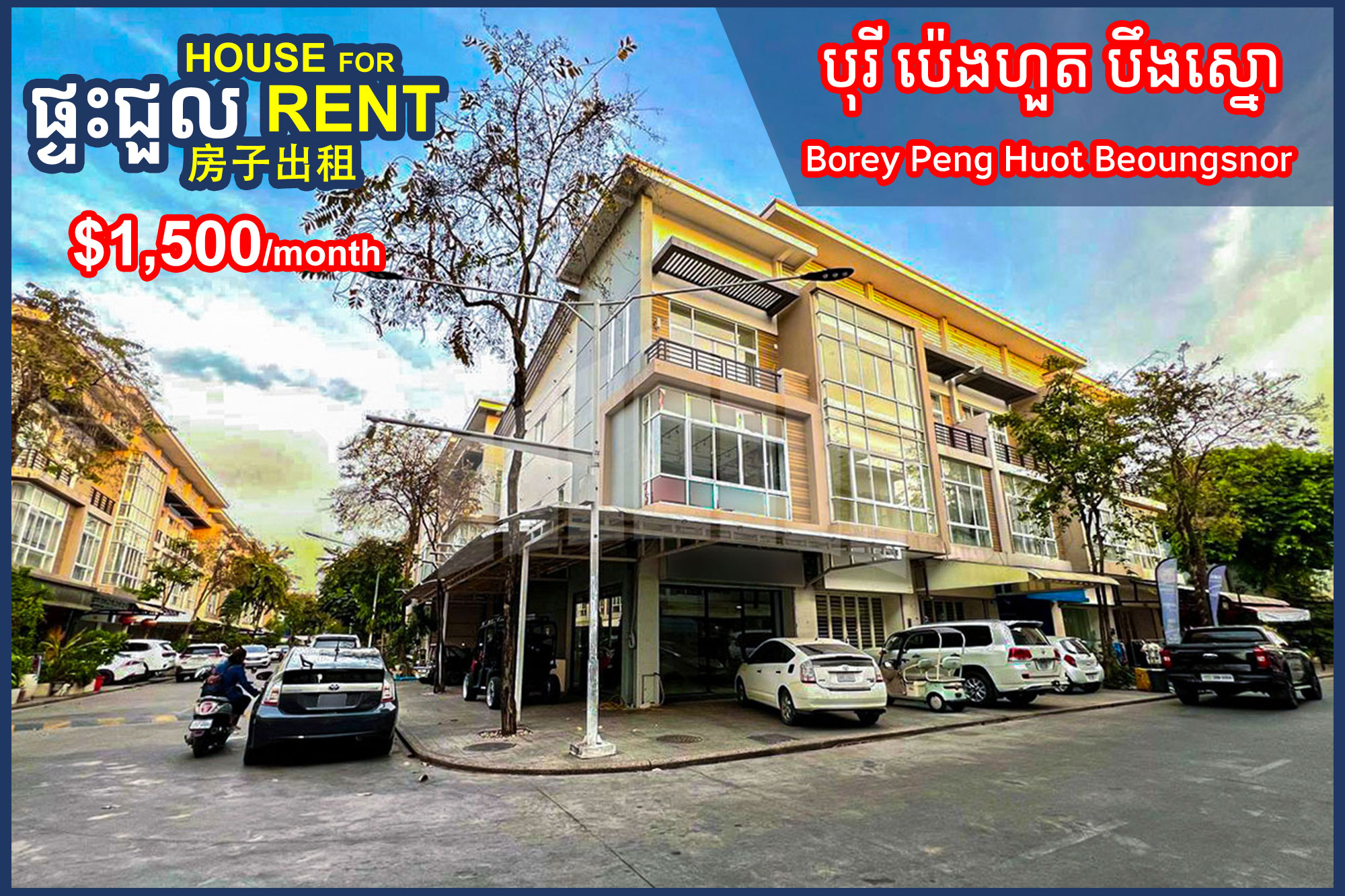 Corner Shophouse for Rent Borey Peng Huot Beoungsnor