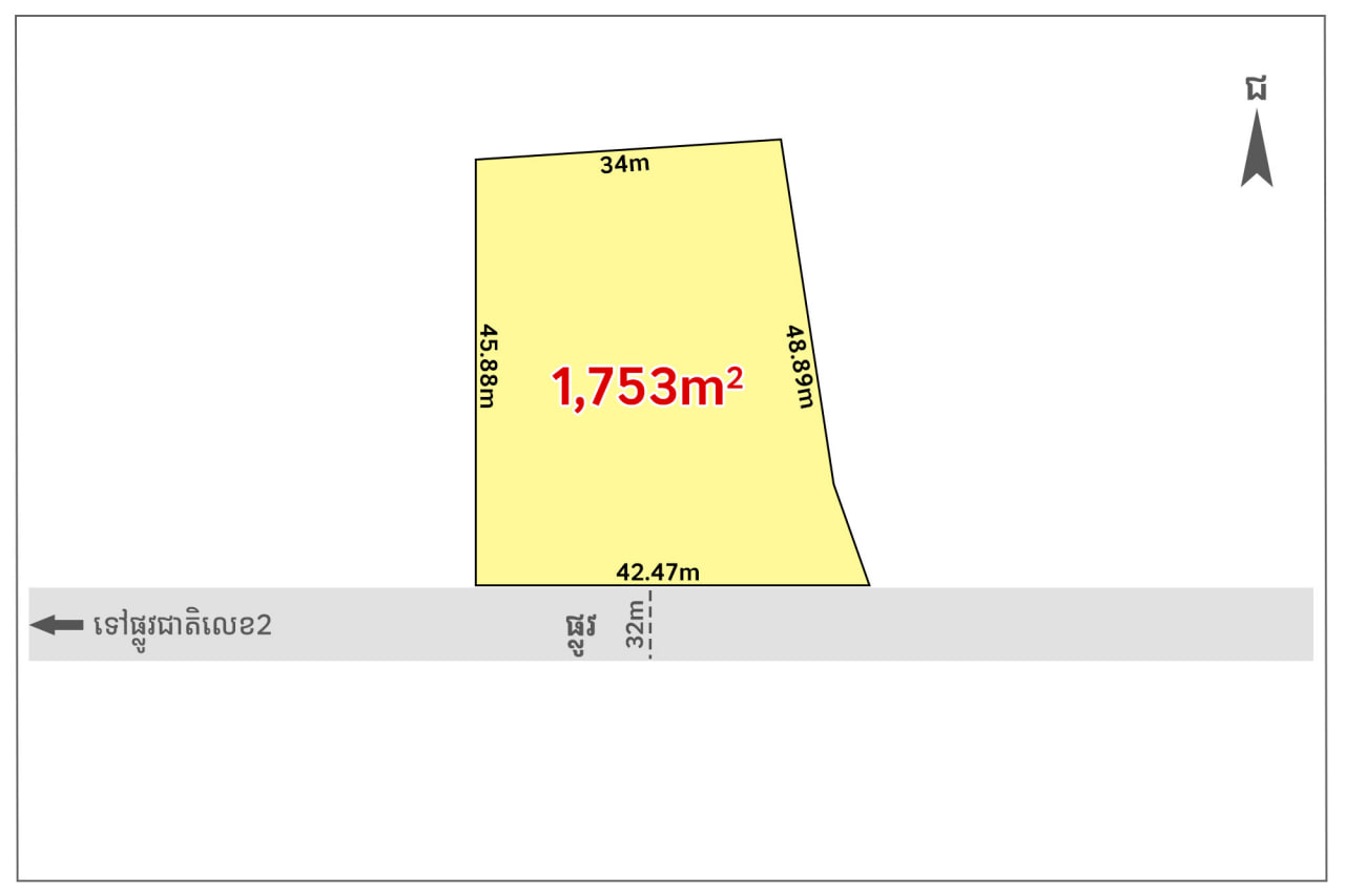 📣 Land for Sale (42mx45m) along 32m wide road, New Airport, Kandal Stoeung District