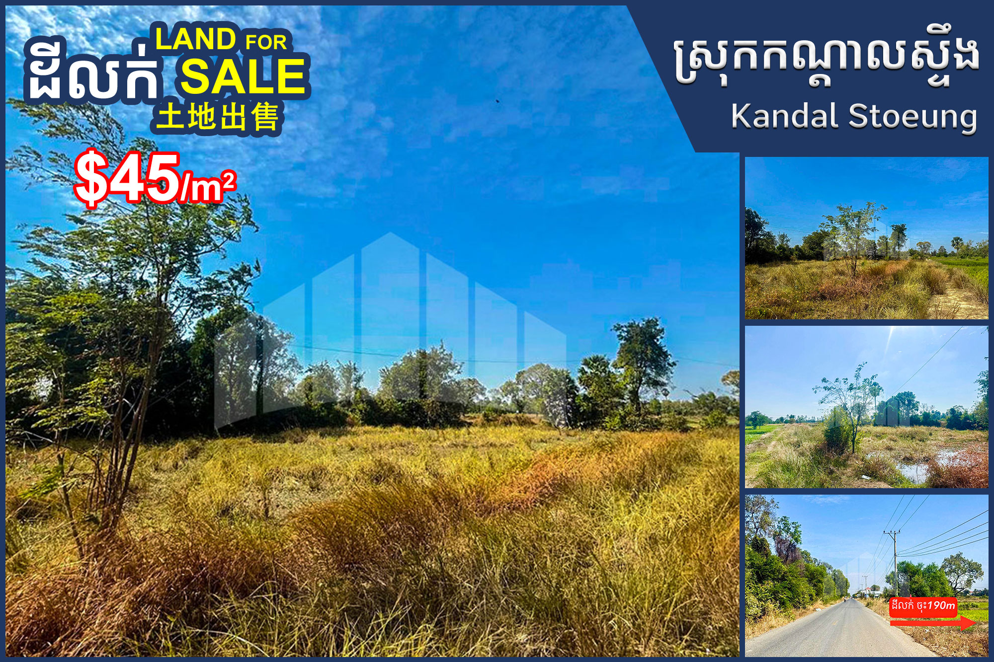 📣 Land for Sale along 4m wide road, Siem Reap commune, Kandal Stoeung district #SN0531