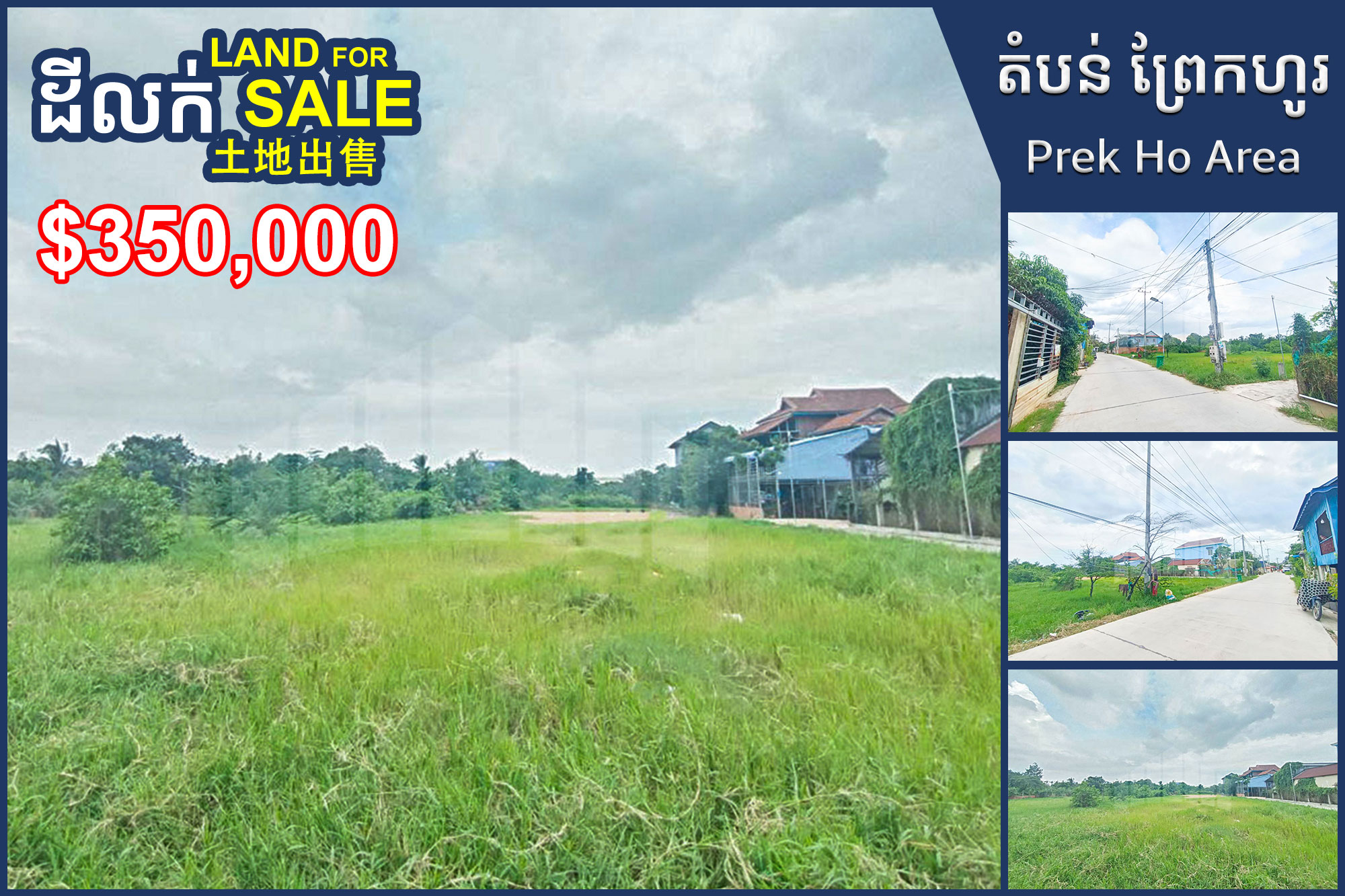 Land for Sale, Concrete Road, Prek Ho District, near new airport