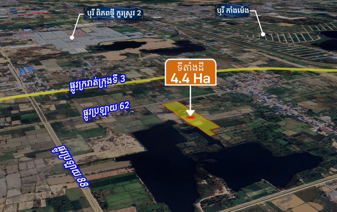 📣 Land for Sale Near New Airport Area, along 32m wide road, near Ring Road 3, Kandal Stoeung District #SS0163