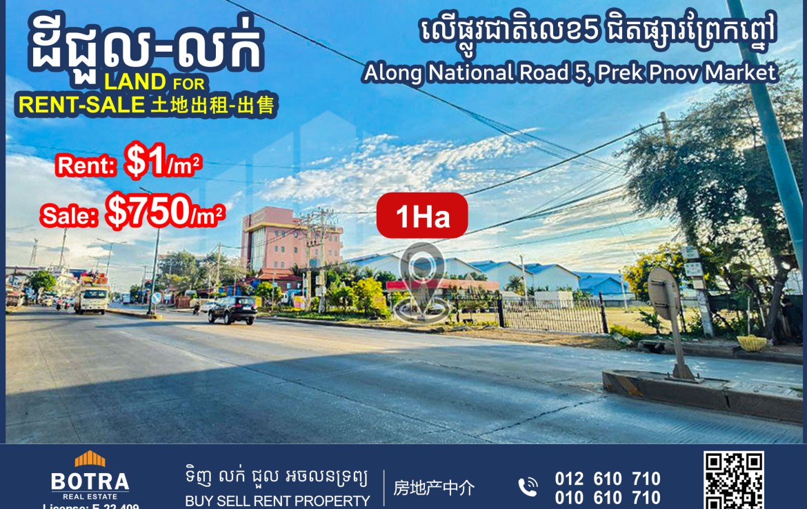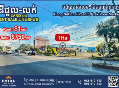 Land for Sale-Rent, along National Road 5, Prek Pnov Market