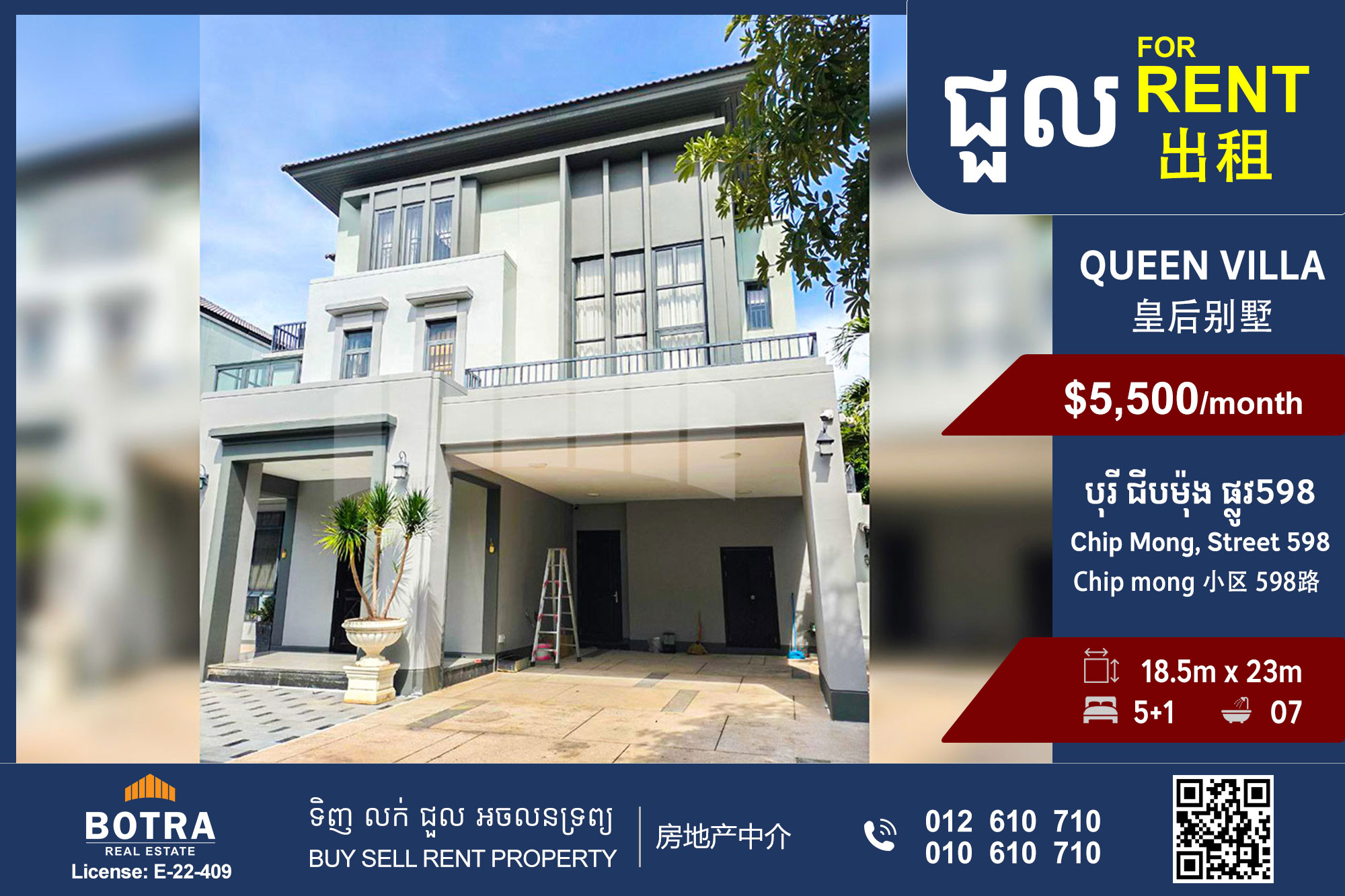 Queen Villa for Rent Borey Chip Mong, Street 598