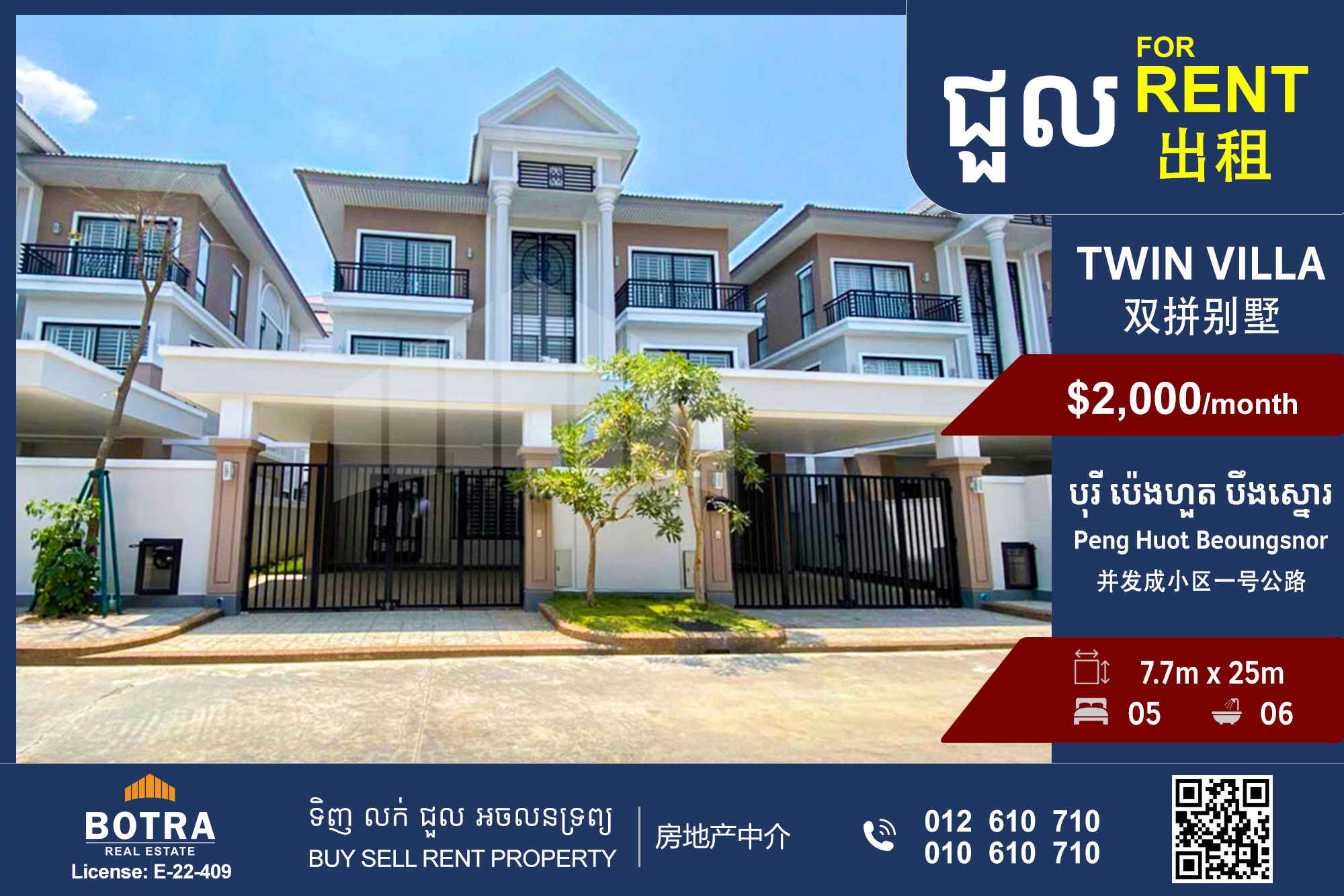 Twin B Villa for Rent Peng Huot Beoungsnor