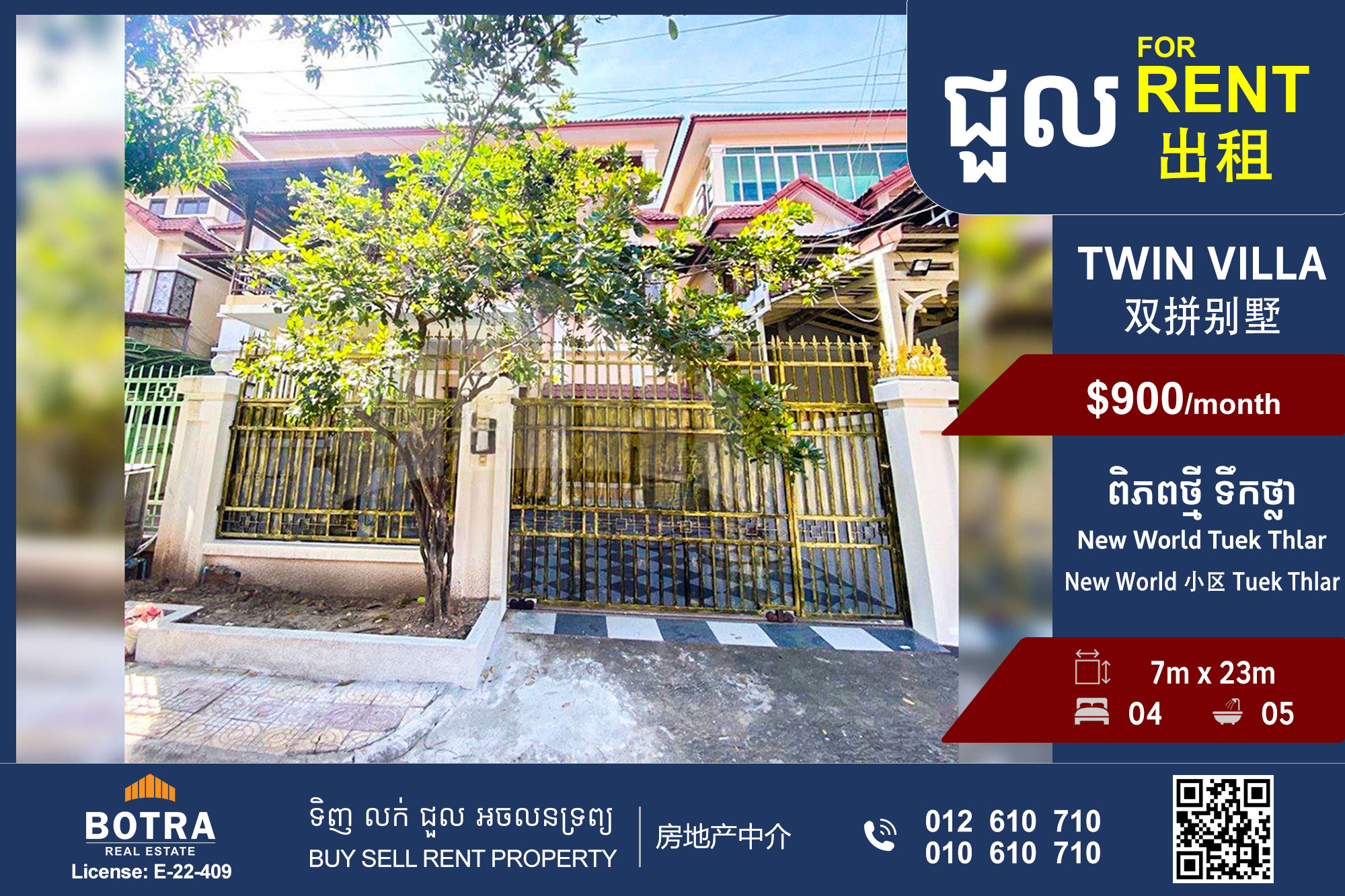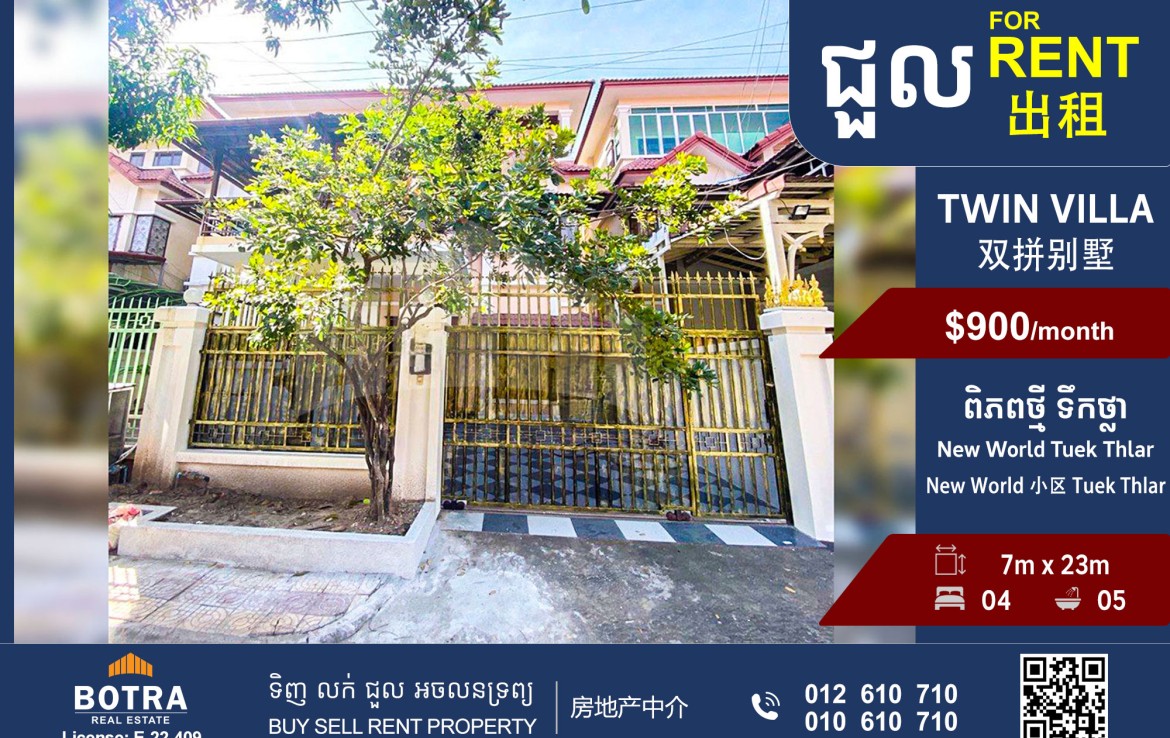 Twin Villa for Rent Borey New World, Tuek Thla