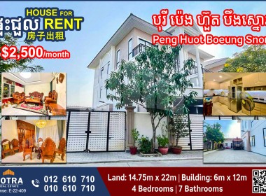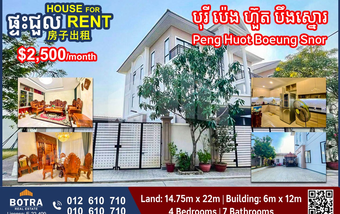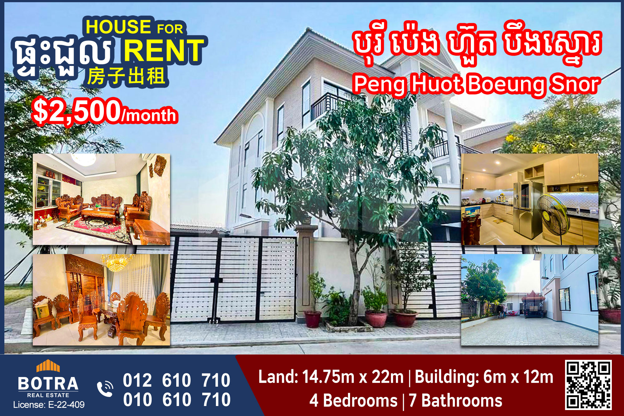 Twin Villa with 8m side for Rent Borey Peng Huot, Boeung Snor