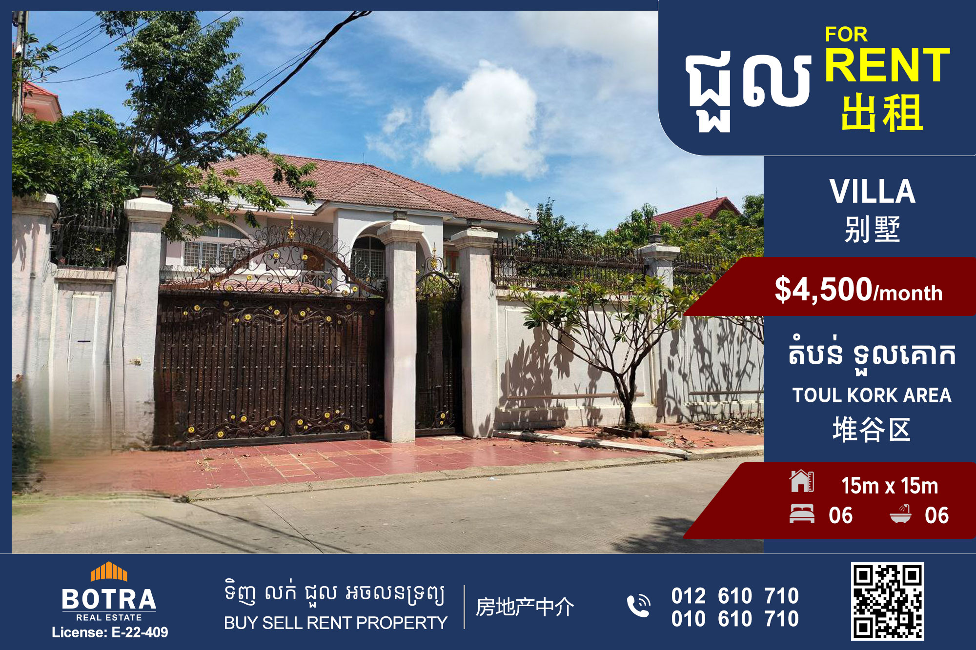 – Villa size: 15m x 15m
