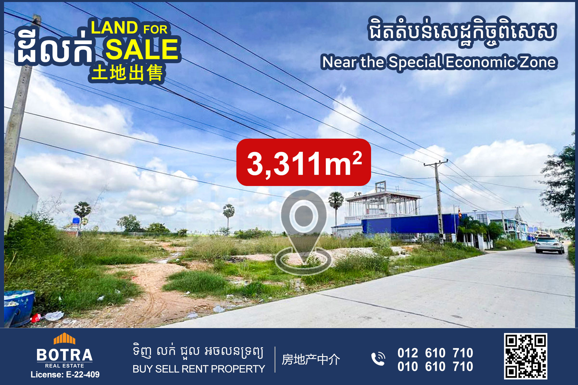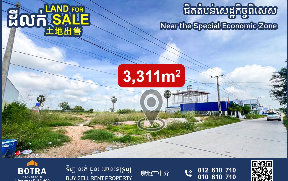 📣 土地出售 沿水泥路, 靠近经济特区, Boeung Thom 公社 #SN0286