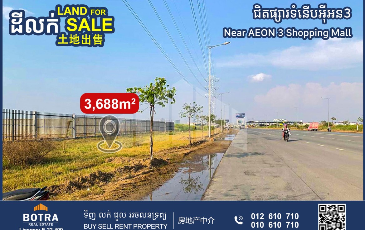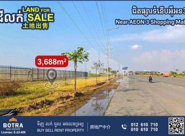 出售土地(靠近 AEON 3 )位于 Samdech Hun Sen 大道(60 米)