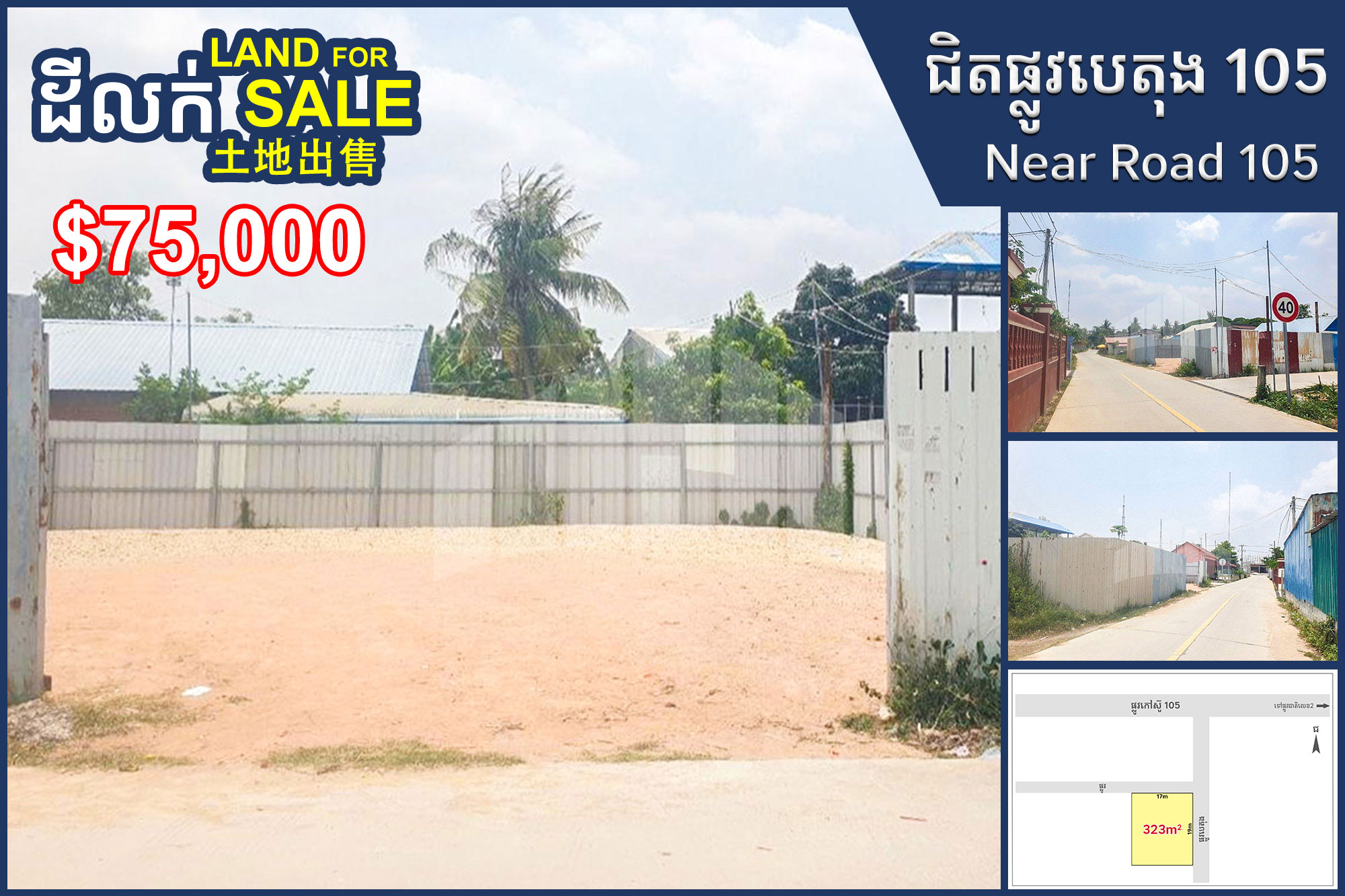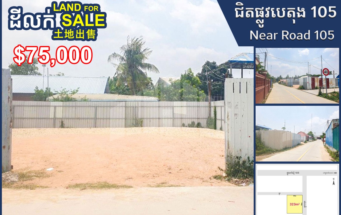 📣 出售土地 靠近105号公路和2号国道, Kandal Stoeung区 #SS0590