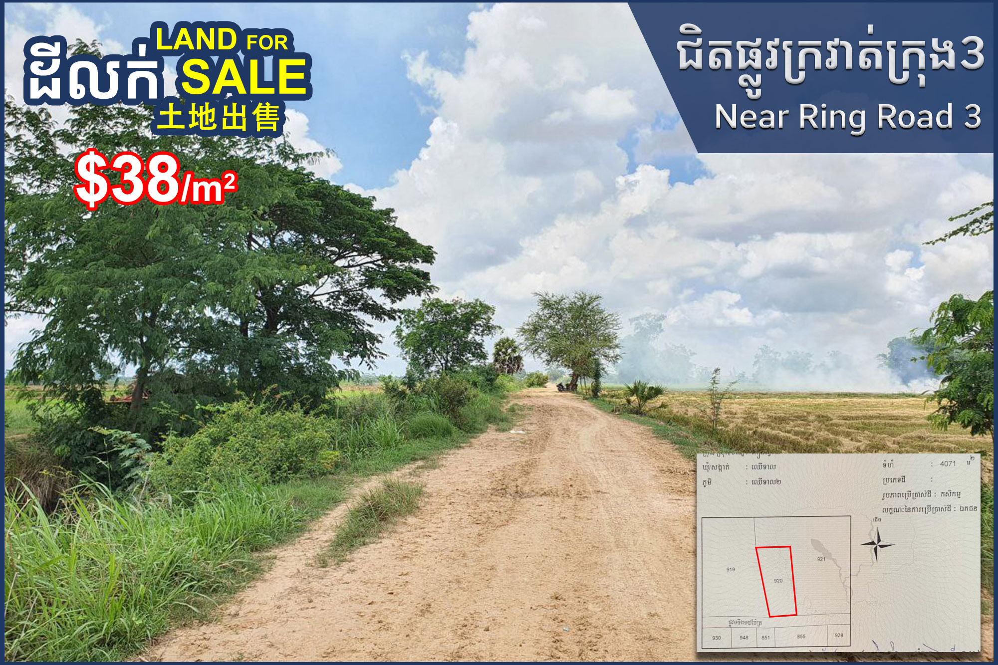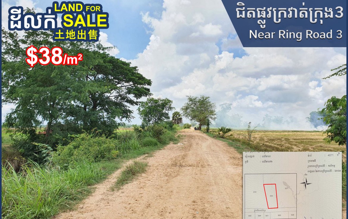 出售土地(30米路口 30米路) Kien Svay区,靠近三环路